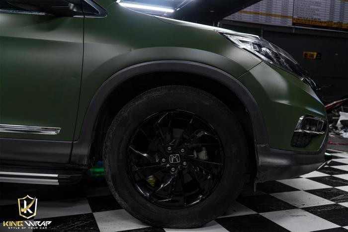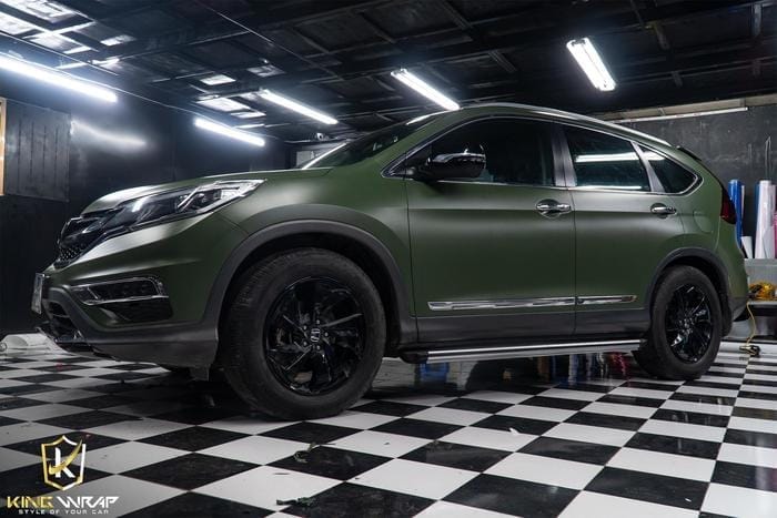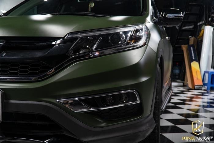 Minitary Green CM09 của decal Teckwrap lên màu mịn, lỳ không tì vết khi được dán tỉ mỉ và công phu dưới bàn tay thợ thi công Kingwrap. Lên đồ mới chuẩn xịn như sơn gốc. Đảm bảo nhìn anh em không thể nhận ra là chiếc Honda CRV này đã dán decal.