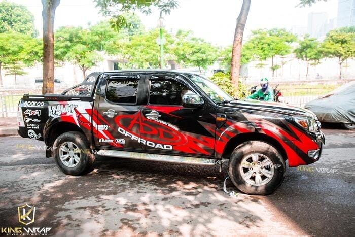 Ford Ranger dòng xe bán tải thể thao mạnh mẽ và năng động nên thiết kế tem sườn cho xe cần hết sức lưu ý để vừa phù hợp với xe mà lại không nhấn chìm sự cá tính vốn có của nó. Kingwrap đã đưa vào mẫu thiết kế này sự phá cách với tem hình 2 bên sườn xe và tem chữ thể hiện cái chất của dòng xe Ford Ranger ở phần đuôi xe.