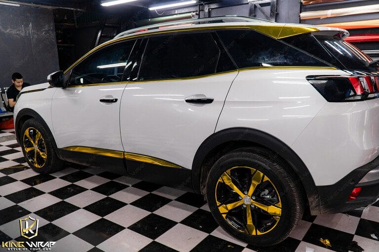 Nếu bạn đã quá nhàm chán với ngoại thất xe PeuGeot 3008 nguyên bản. Hãy tham khảo ngay mẫu dán decal xe ô tô vàng chrome bóng gương bên dưới tại Kingwrap Hà Nội nhé.