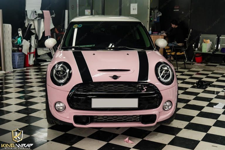 Mini Cooper S này là chiếc xe của 1 anh khách quen tại Kingwrap, làm đẹp lại tặng cho người vợ thân yêu của mình. Từ nước sơn nguyên bản cũ kỹ và bị xước em nó đã được lột xác hoàn toàn bằng mẫu mẫu dán đổi màu hồng tại Kingwrap Hà Nội.