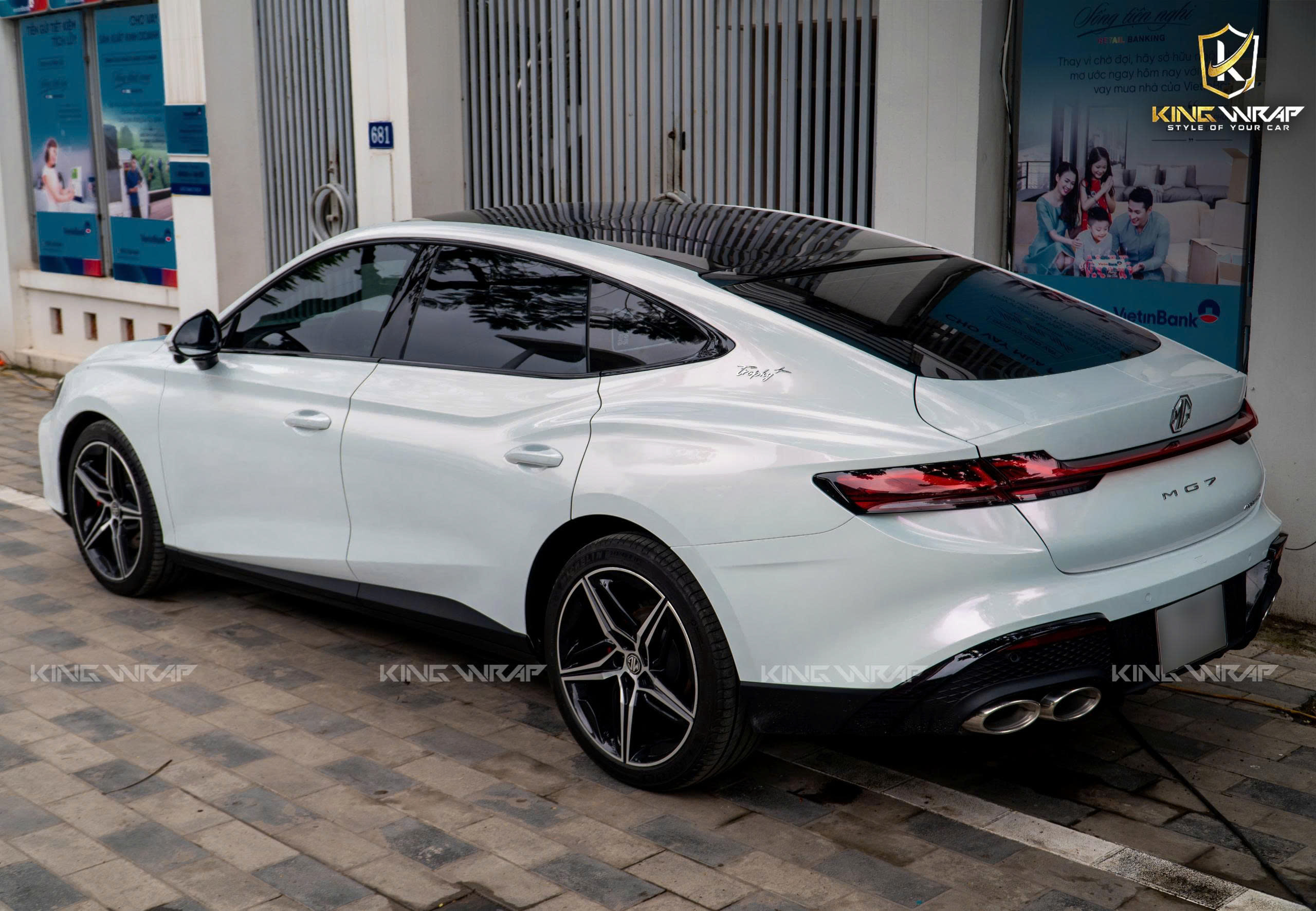 Dán đổi màu trắng ánh hồng MG7 không chỉ giúp xe trở nên nổi bật và sang trọng hơn mà còn bảo vệ sơn zin hiệu quả. Đây là lựa chọn lý tưởng cho chủ xe muốn nâng cấp diện mạo nhưng vẫn ưu tiên sự tinh tế.