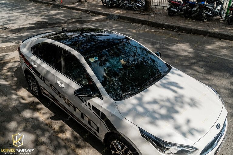 Kingwrap chuyên dán nóc ô tô Kia Cerato uy tín tại Hà Nội. Decal đen bóng Panorama Mỹ chính hãng siêu bóng, độ bền cao khác hẳn dòng decal giá rẻ bóng thường, bóng sơn, độ bền kém.