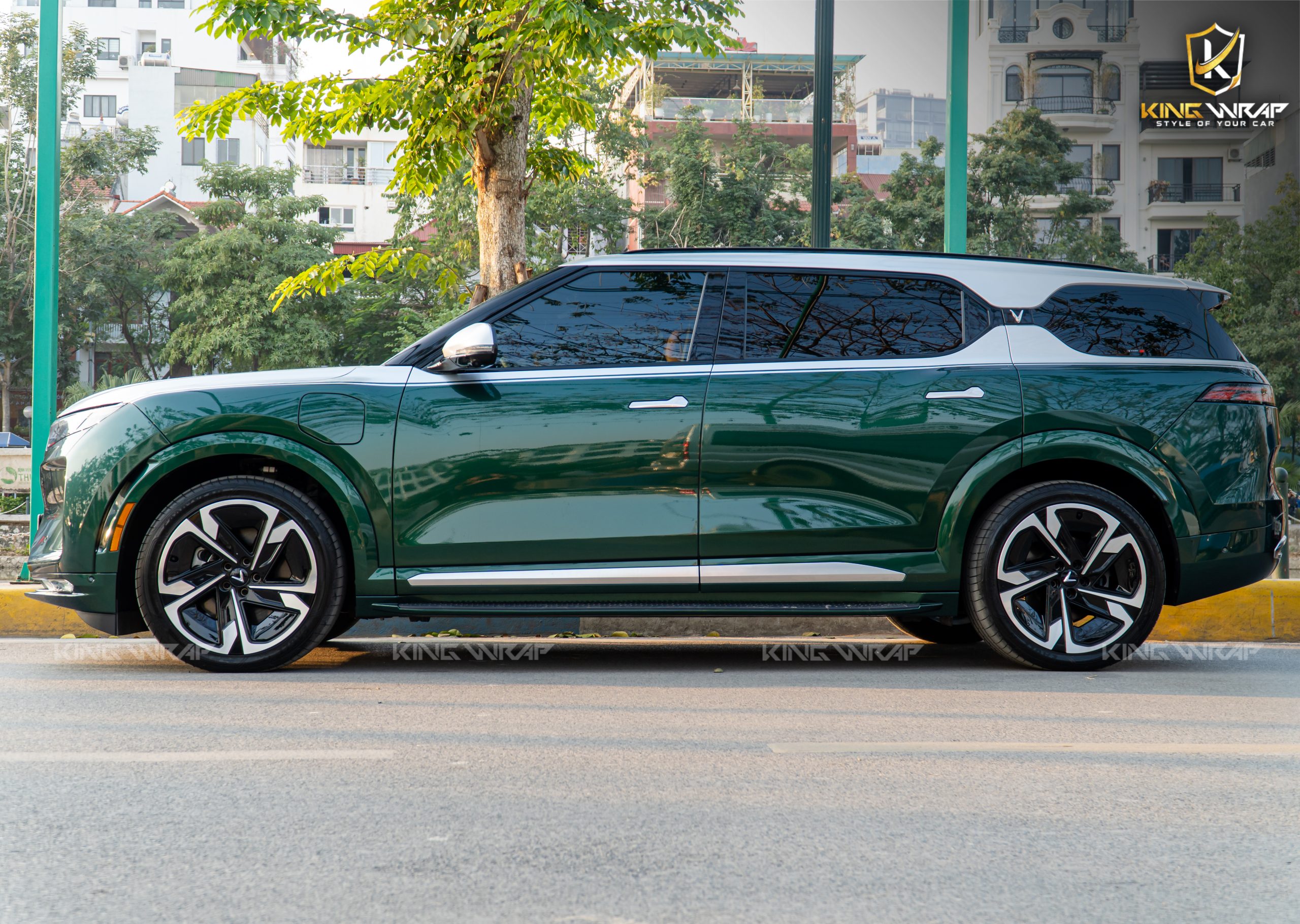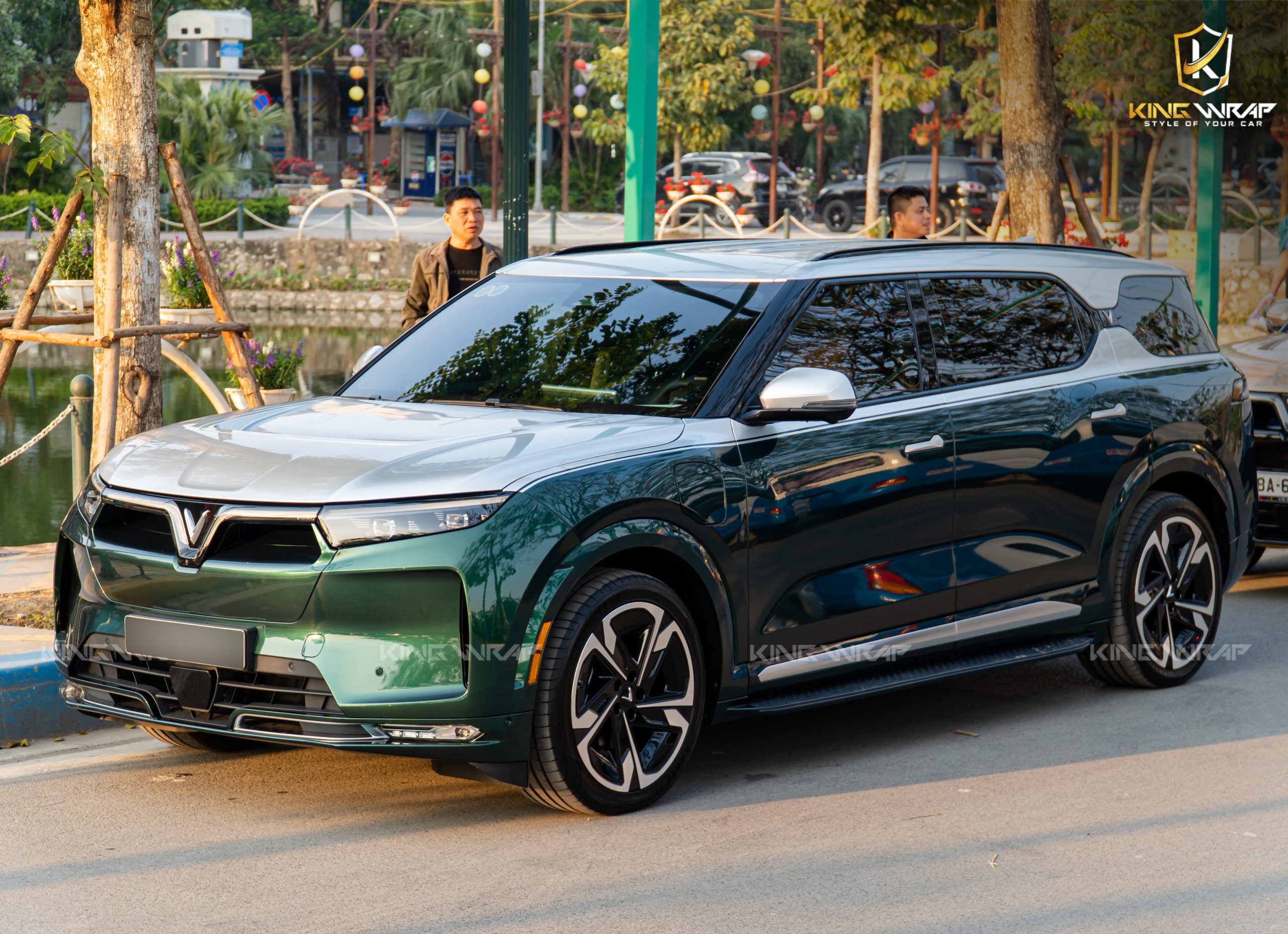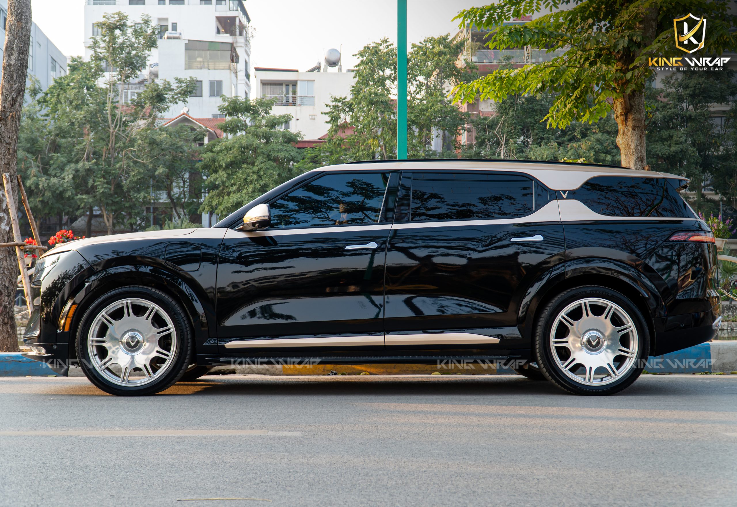 - Sang Trọng – Khác biệt: Đặc trưng của Maybach là thiết kế sơn hai màu, giúp xe trông cao cấp và thanh lịch hơn. KingWrap áp dụng phong cách này cho VF9 với màu bạc cao cấp kết hợp với màu sơn đen nguyên bản, tạo nên một diện mạo hoàn toàn mới, sang trọng không kém những mẫu SUV siêu sang.