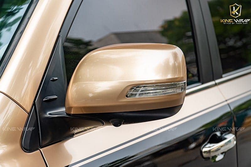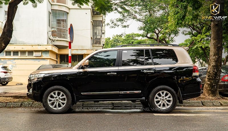 Để giúp chiếc Land Cruiser trở nên độc đáo hơn, Kingwrap Hà Nội có demo thiết kế dán thêm phong cách Maybach dán nửa trên màu vàng sâm panh hợp mệnh chủ xe.