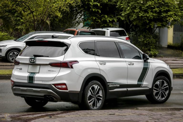 Trên nền Trắng Bóng của chiếc Santafe đã nổi bật lên bộ tem sườn Xanh Hunter GAL-29S tuy đơn giản, nhẹ nhàng nhưng đã tạo nên sự khác biệt, nổi bật hơn. Thể hiện được phong cách cá nhân, cũng như nâng tầm đẳng thời trang và diện mạo của xế cưng. Đến với Kingwrap anh em sẽ nhận được những mẫu dán decal đổi màu oto, dán tem xe oto, dán nóc xe oto đẹp, độc, thời trang nhất hiện nay.