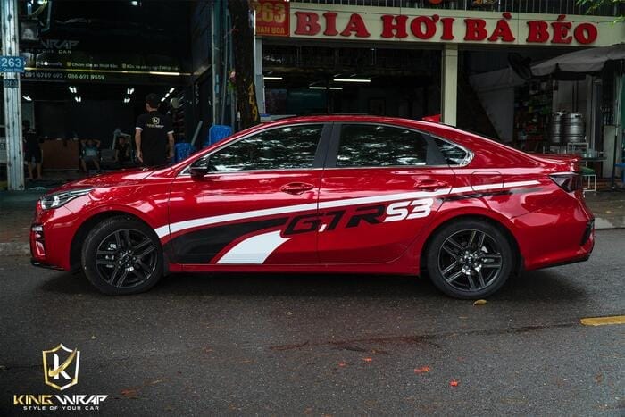 Thêm một mẫu tem sườn Cerato nữa được trình làng tại Kingwrap với thiết kế tem G1RS3 màu trắng đen nổi bật trên nền sơn đỏ bóng. Rất nhiều xe Cerato chọn giải pháp dán tem sườn tạo thêm điểm nhấn và cá tính.
