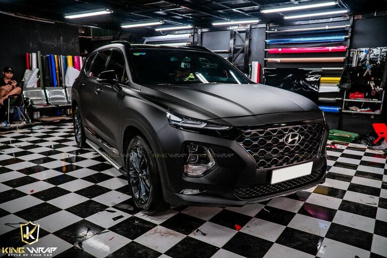 Vì sao nên dán Decal đổi màu xe oto Hà Nội Santafe Đen Lì CM01 tại Kingwrap?