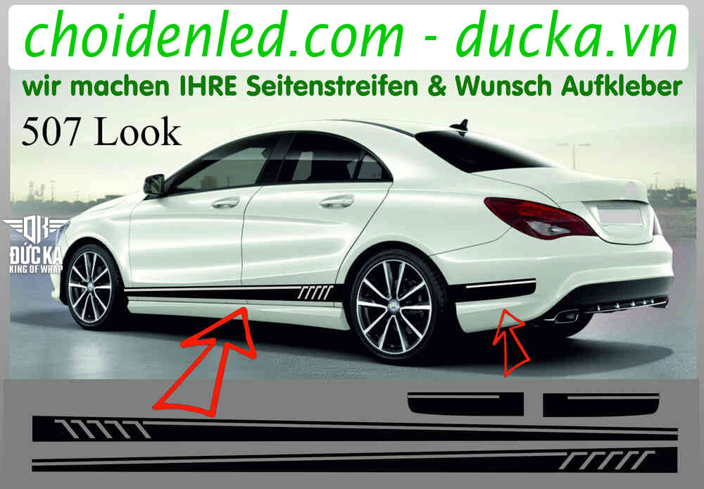 Với phương châm đó, KingWrap lên thiết kế một số mẫu Decal tem sườn xe Mercedes C-Class để quý khách tham khảo và lựa chọn. Chỉ với chi phí cực kỳ hợp lý vài trăm nghìn nhưng lại tạo nên điểm nhấn, sự khỏe khoắn của dòng xe sang.